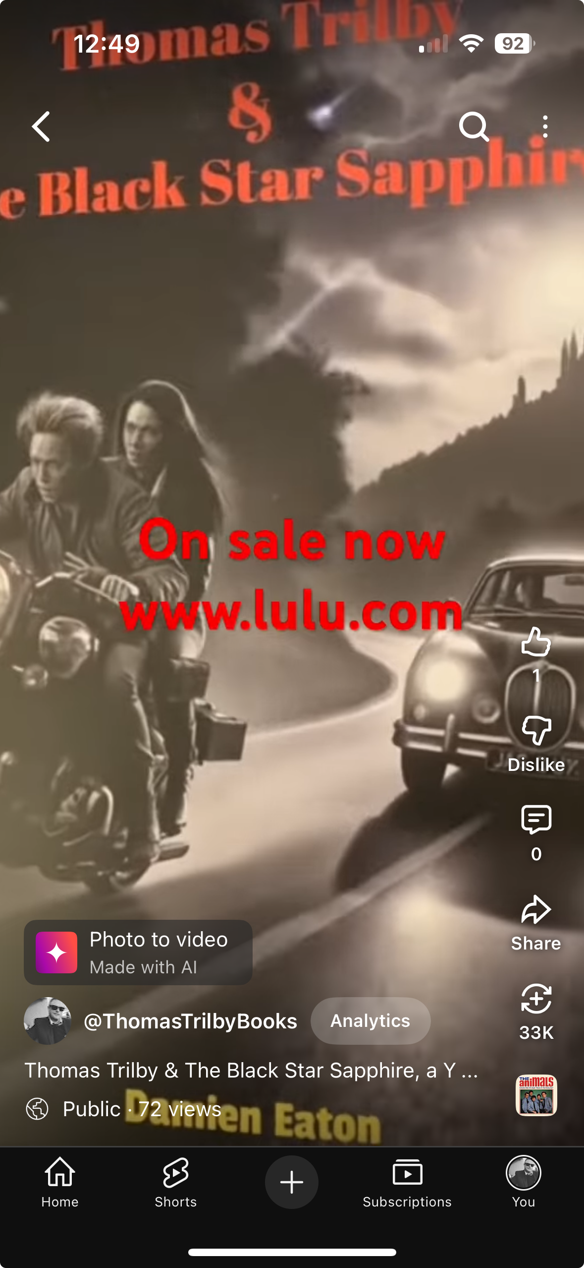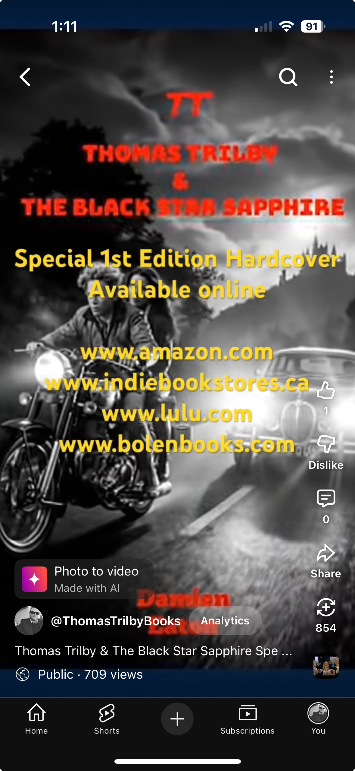 Launched October 28th, to promote the online release of my novel Thomas Trilby & The Black Star Sapphire on Halloween Day, October 31st. Available only initially from my distributor Lulu Press. www Lulu.com